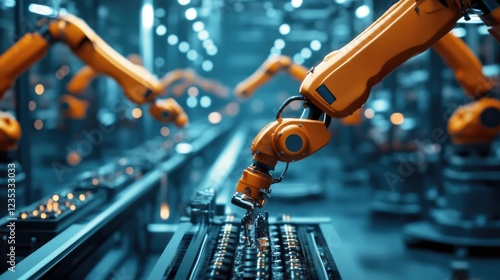 A factory producing steel products with robotic arms in motion.