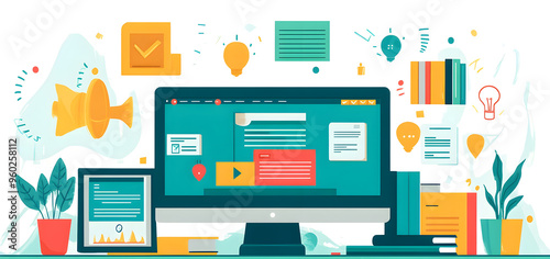 A flat design of a virtual classroom interface with intuitive lesson access and interaction tools