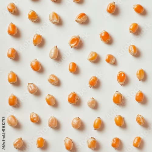 A Flat Lay Pattern of Dried Corn Kernels on a White Background.