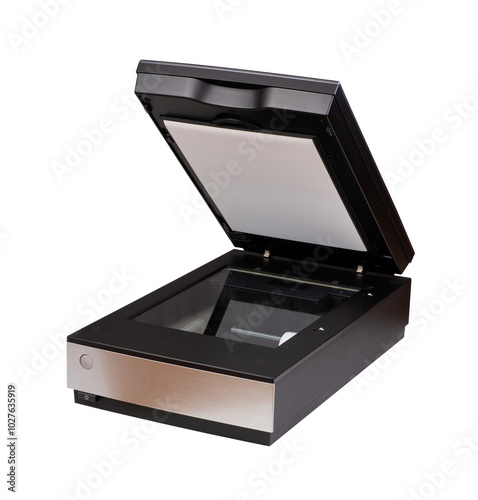 A flatbed scanner isolated on white background