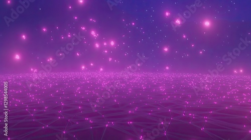 A floating network of interconnected glowing nodes in an endless digital space.