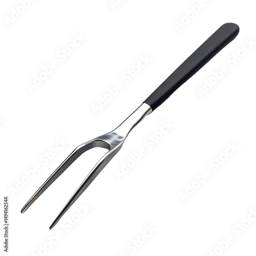 a fork with a black handle on a white background