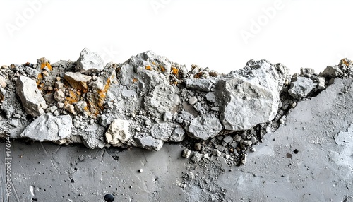 A fractured edge of a concrete structure, showing broken texture and light color
