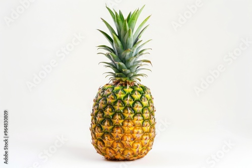 A fresh pineapple sits on a clean white surface