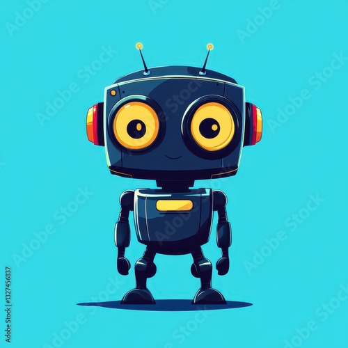 A Friendly Cartoon Robot Displays Antennae and Expressive Yellow Eyes