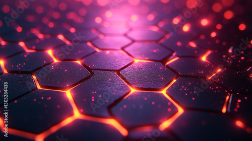 A futuristic background featuring glowing neon hexagons set against a black honeycomb carbon texture, symbolizing innovation, technology, and the digital age