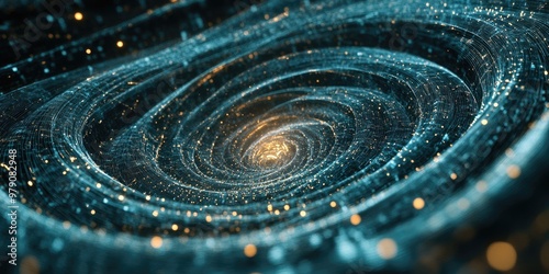 A futuristic computer interface filled with complex data sets and algorithms, visualized as swirling lines and dots, as an AI processes and learns from the information.