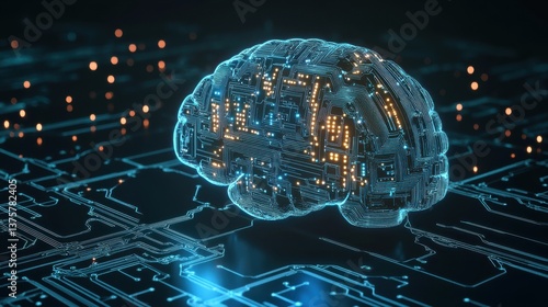 A futuristic digital brain surrounded by circuit patterns, representing advanced technology and artificial intelligence.