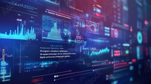 "A futuristic digital interface displaying real-time cryptocurrency data and statistics.