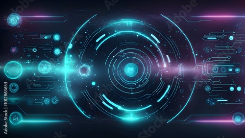 A futuristic digital interface with glowing circles and lines, suggesting advanced technology.