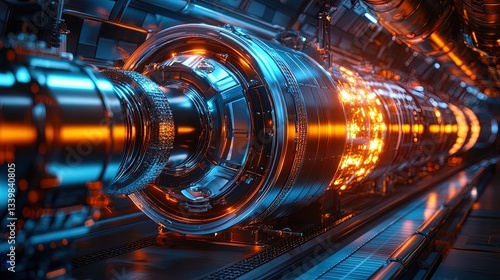 A futuristic particle accelerator visualizing glowing atomic interactions, dynamic and radiant