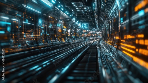 A futuristic railway network connection, represented by a virtual interface used by engineers to monitor transport systems