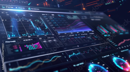 A futuristic stock chart interface with advanced data visualization tools and analytics.