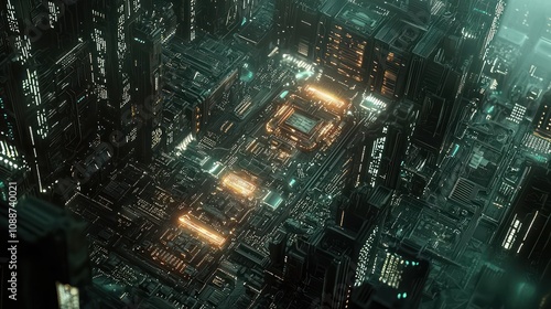 A futuristic technology-themed image featuring circuit boards and glowing elements