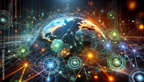 A futuristic visualization of a glowing digital network with interconnected nodes and lines, symbolizing business and technological connectivity in an abstract and dynamic style