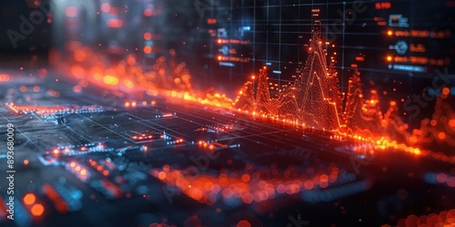 A futuristic visualization of financial data with glowing charts and graphs, representing digital economy and analytics.