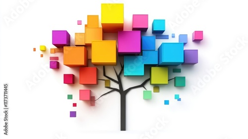 A geometric tree map chart clipart, data categorization element, modern design, multicolor blocks, isolated on white background