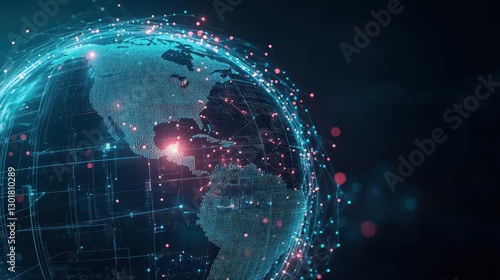 A Global Network Visualization Featuring a Globe Surrounded by Interconnected Dots Representing Data Connections and Technological Interactions Worldwide