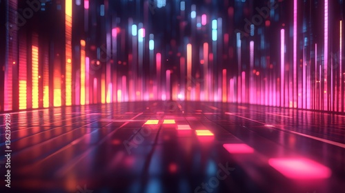 A glowing 3D equalizer with smooth transitions between bars, set in a futuristic environment