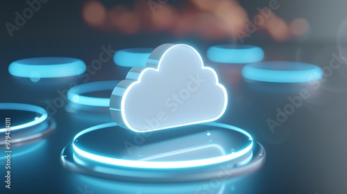 A glowing cloud icon representing digital storage and cloud computing technology in a futuristic design.
