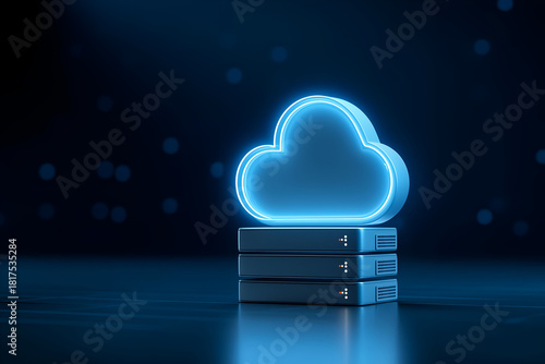 A glowing cloud symbol above a stack of servers, representing modern data storage and cloud computing technology.