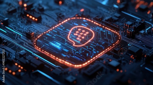 A glowing cpu with a neural network symbol highlights advanced ai processing.