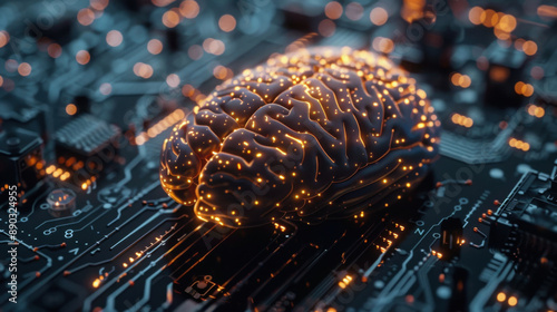 A glowing digital brain integrated with a circuit board symbolizes artificial intelligence and advanced technology in computing.