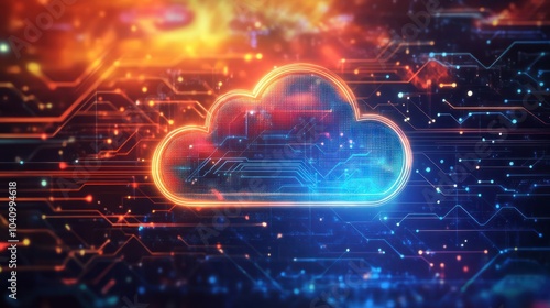 A glowing digital cloud icon hovers above intricate circuitry, symbolizing cloud computing and data integration in modern technology.