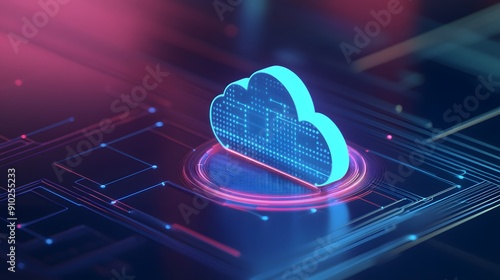 A glowing digital cloud on a futuristic circuit board, representing cloud computing technology and data storage.