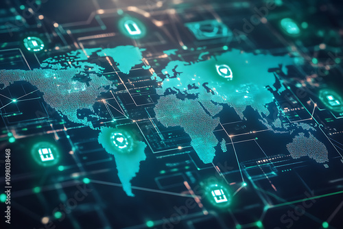 A glowing digital world map with red warning symbols indicating cyberattacks, representing global cybersecurity challenges and risks.