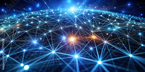 A glowing fiber optic network forms a delicate, interconnected web, symbolizing modern communication, unity, and global