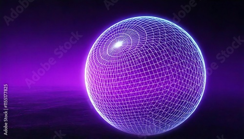 A Glowing Neon Wireframe Sphere with Intersecting Lines Forming a Geometric Web, Surrounded by Light