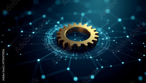 A golden gear symbol representing the core of technological innovation, within the context of network technology