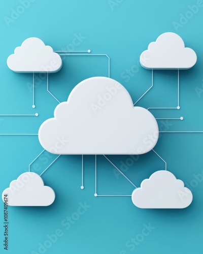 A graphic representation of interconnected cloud icons on a blue background, illustrating cloud computing and data connectivity.