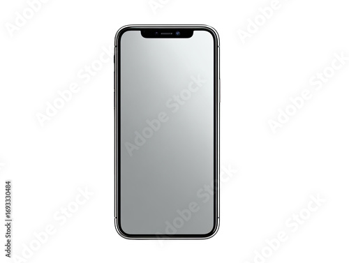 A gray smartphone, front view. Blank screen. Dark background