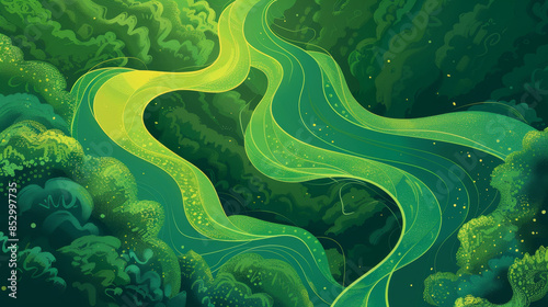 A green river with trees in the background