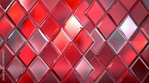 A grid of red diamonds, each with a subtle gradient, creating a seamless transition of hues across the pattern, reflecting light as if made from polished glass.