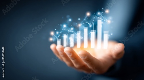 A hand holding a graph with rising bars, symbolizing growth and success.