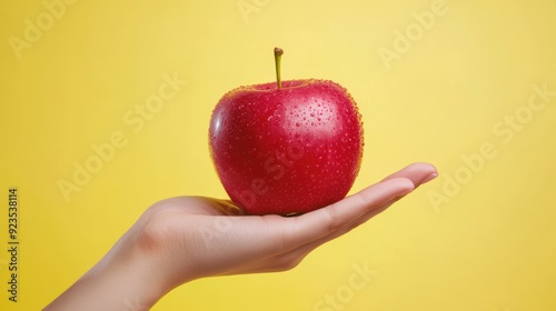 A hand holding a red apple
