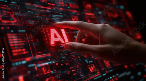A hand is pointing at the letter A on a computer screen. Generative AI