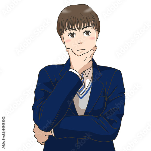 A high school boy thinking something