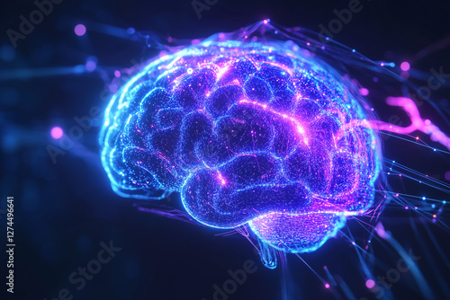 A high-tech artificial intelligence brain surrounded by glowing neon circuitry, symbolizing deep learning, advanced computing, and futuristic AI technology.