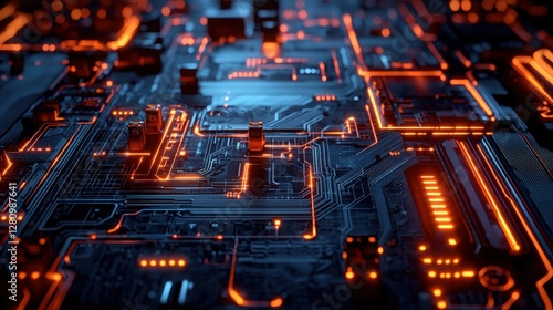 A high-tech background featuring futuristic circuit boards and glowing pathways, representing digital connectivity and innovation. Perfect for technology presentations, web design, cybersecurity theme