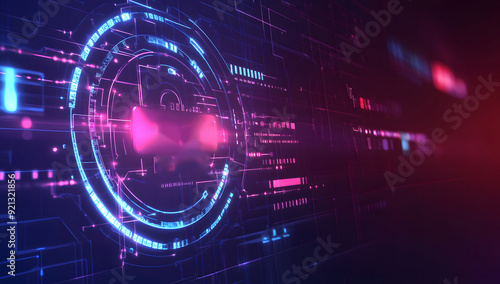 A high-tech banner design with text data encryption with a digital padlock, symbolizing the robust integration of encryption in cutting-edge data security. binary code design