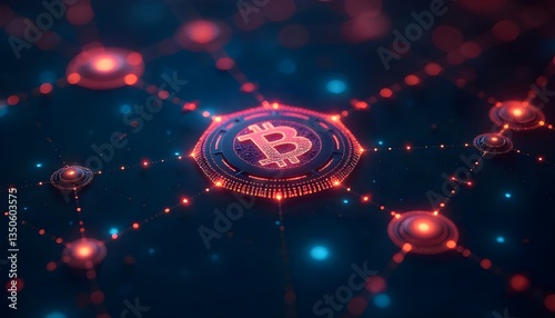 A high-tech blockchain network with glowing interconnected nodes, representing decentralized finance