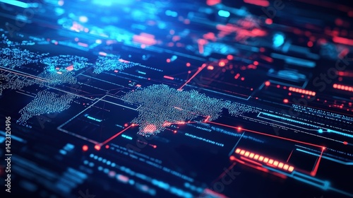 A high-tech dashboard animation with lines of code merging with environmental analytics, AI-driven sustainability data visualization