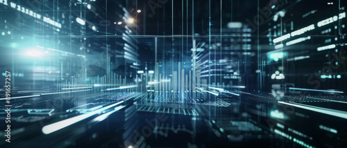 A high-tech data visualization with glowing data streams and intricate digital patterns, set against a dark, futuristic background.