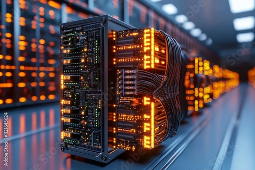 A high-tech visualization of a cloud database system, with interconnected glowing nodes and flowing data streams