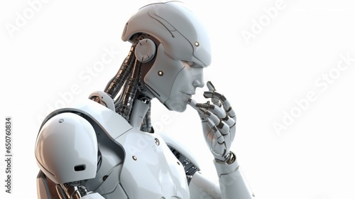 a humanoid robot smoking a cigar 3D 4K white background.Generative AI