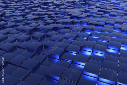 a landscape with many blue cubes